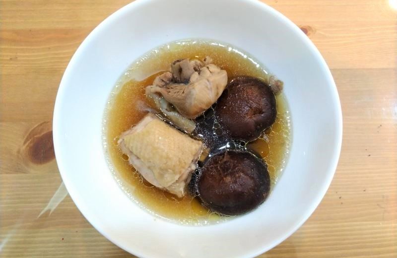 ▼スープ、椎茸、鶏肉ともに、いい色に仕上がっています。