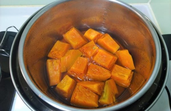 ステップ3. かぼちゃを電鍋に投入