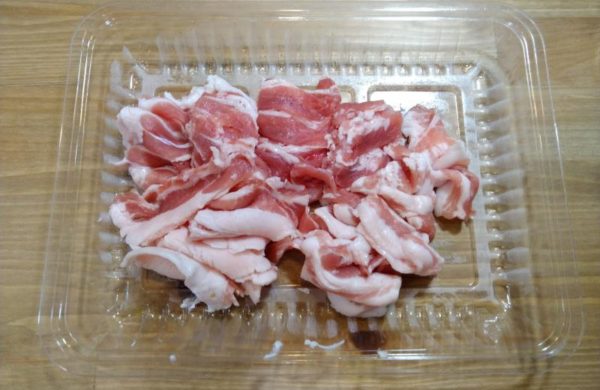 ▼酸白菜、豚肉を適当な大きさ(ひと口サイズ)に切ります。