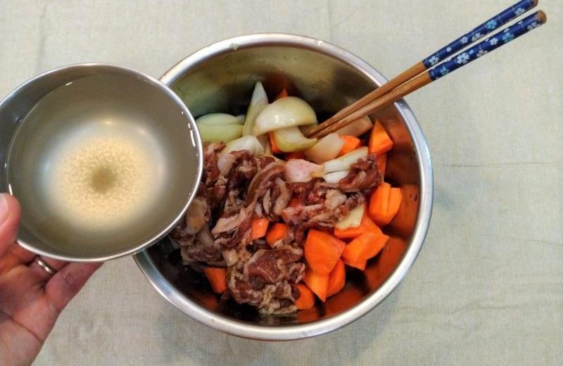 ステップ2. 豚肉を漬け汁につける